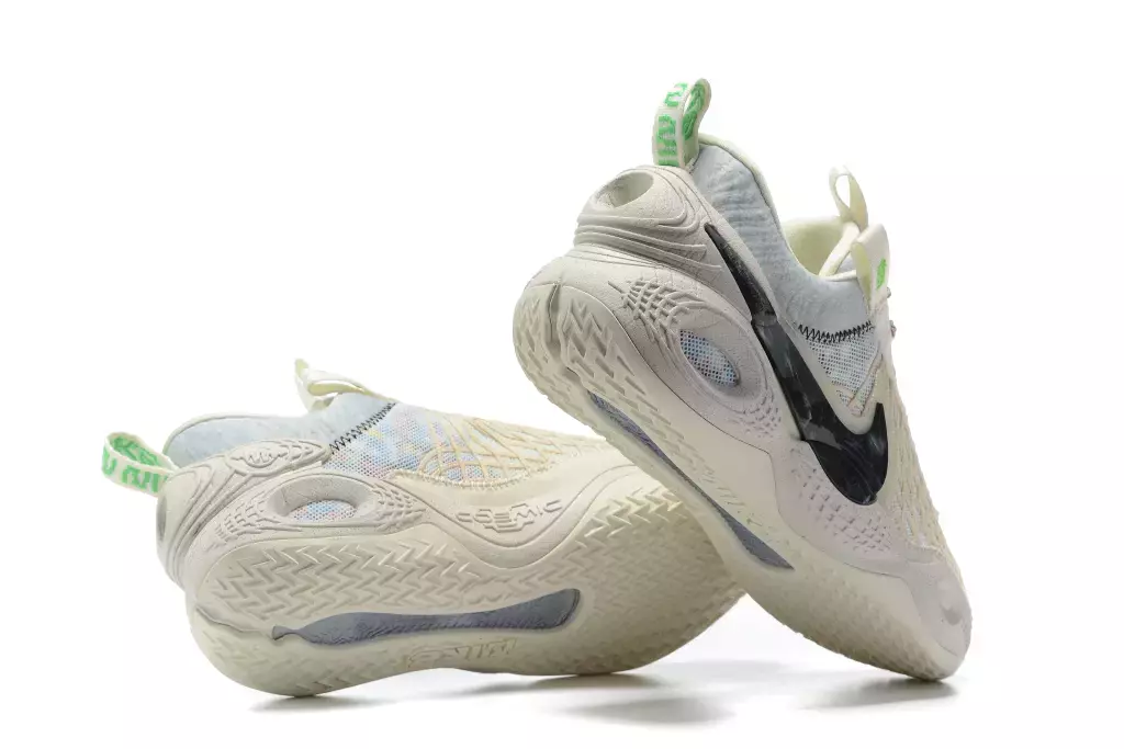 O Nike Cosmic Unity 'Natural' apresenta tons neutros em um tênis esportivo que combina amortecimento responsivo com uma construção sustentável feita com pelo menos 25% de conteúdo reciclado por peso. A parte superior é construída em malha em tons de marfim que revela toques de cores vibrantes em toda a base têxtil. Um acabamento cinza marmorizado distingue o Swooshoversized que adorna o lado lateral, enquanto acentos verdes brilhantes pousam no eyestay e uma aba de puxar webbing no calcanhar. A capacidade de resposta na quadra é fornecida por um Zoom Air Strobel de comprimento total costurado diretamente na entressola.