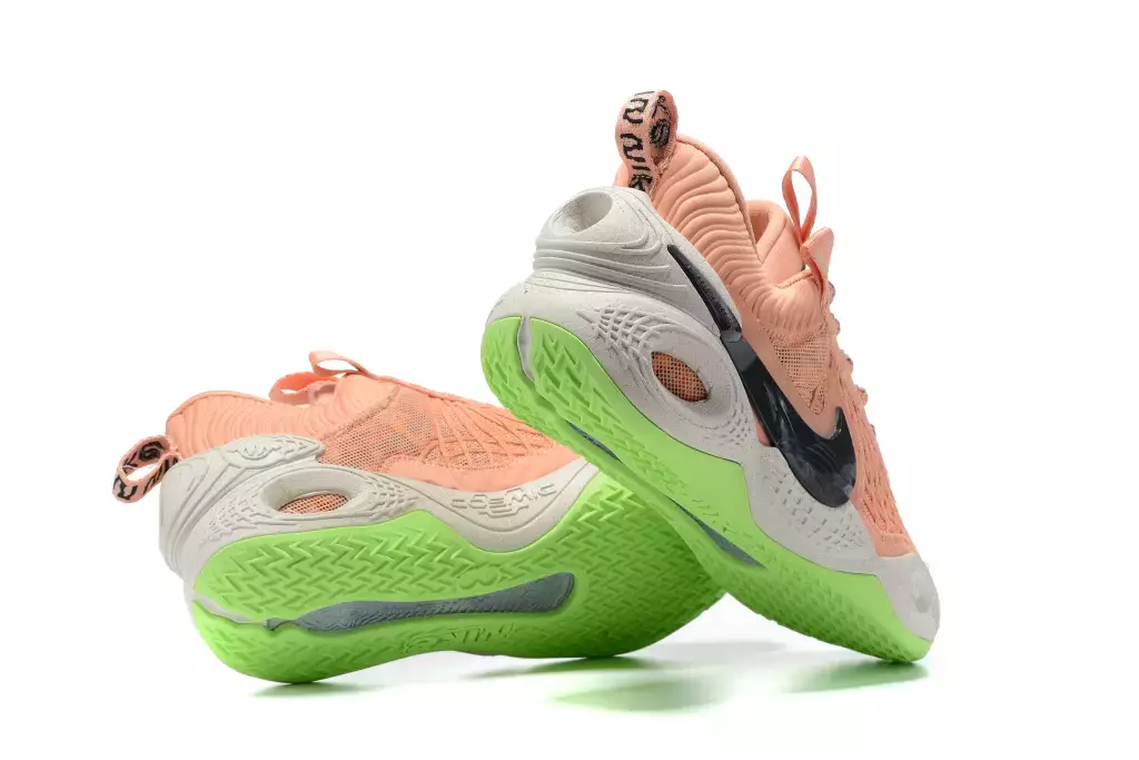 Inspirado pelo mundo natural, o Nike Cosmic Unity ‘Pomegranate’ destaca tons pastel em um tênis de basquete de desempenho construído com 25% de materiais reciclados por peso. Têxtil cor de pêssego é utilizado em toda a parte superior, equipado com uma língua de pelúcia decorada com um gráfico de romã. Um infográfico científico sobre a palmilha revela que a casca da fruta foi usada para criar um pouco da coloração do sapato. O tênis é montado em uma sola intermediária de espuma podular que é complementada por um Strobel Air Zoom de comprimento total.
